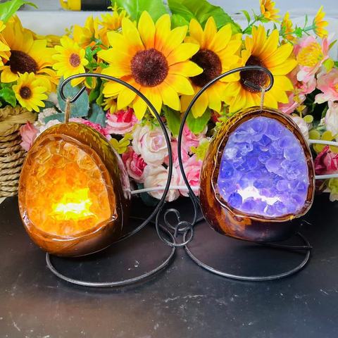 טבעי אמטיסט Geode מנורת מלוטש לילה אור קריסטל הדרקון ביצת מנורת קישוט